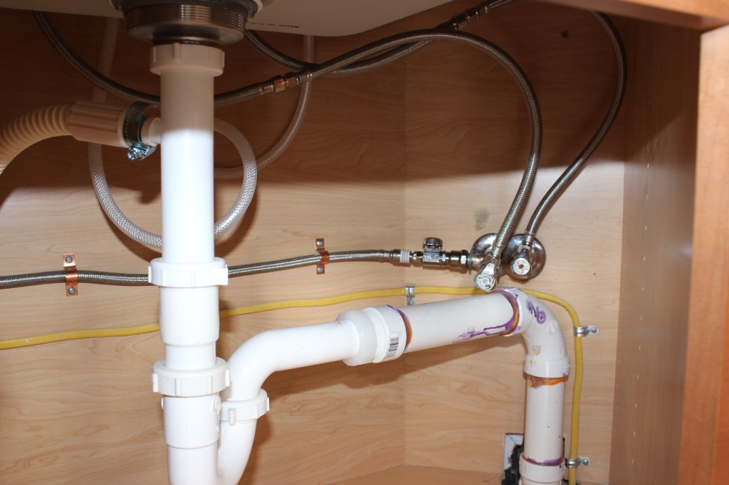 Oraganized plumbing and electric under sink